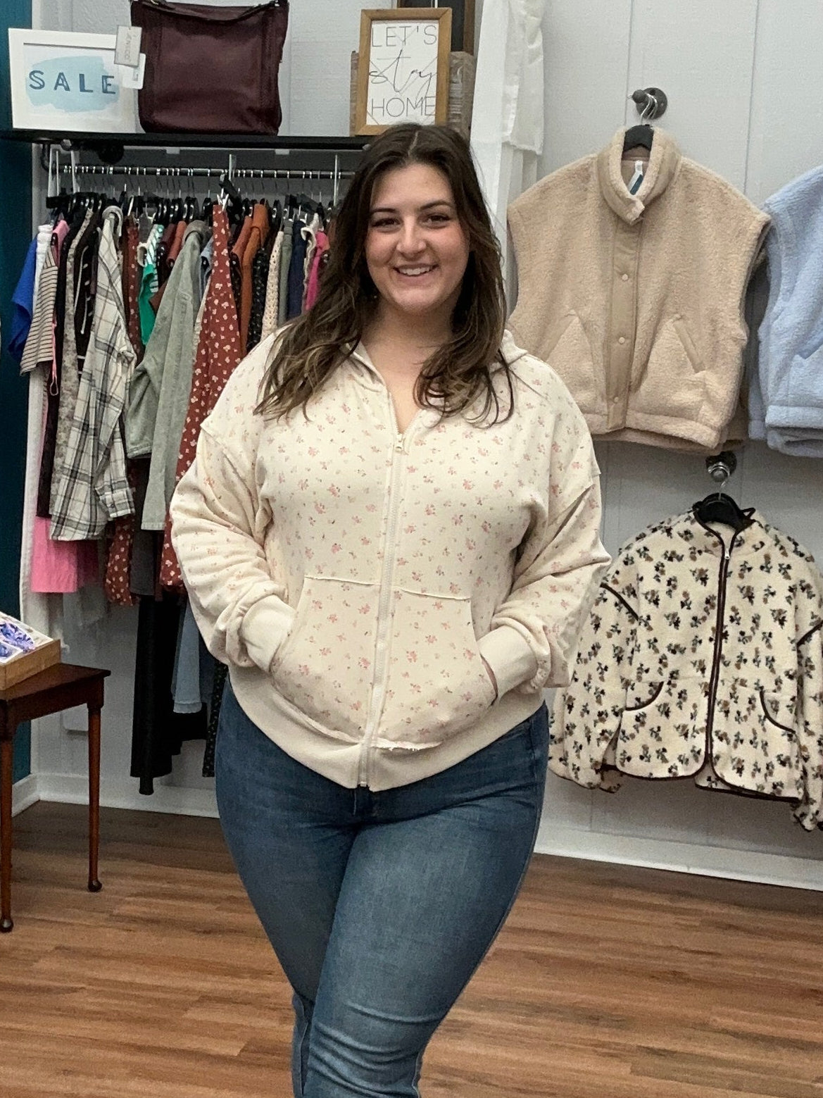 Make a statement with this oversized floral printed zip-up hoodie that's equal parts cozy and cool. The relaxed drop shoulder silhouette and long sleeves create that effortlessly laid-back vibe, while roomy front pockets are perfect for keeping your hands warm or stashing your essentials. Whether you're running errands or hanging with friends, this casual top brings comfort and style to your everyday rotation.