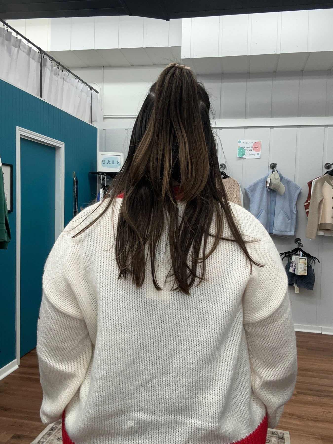 Elevate your seasonal wardrobe with this sophisticated tree embroidered cardigan. Featuring a refined v-neckline and button-down front, the piece showcases delicate tree embroidery that adds understated elegance. Contrast ribbing at the cuffs and hem provides structured definition, while the relaxed fit ensures comfortable, effortless wear throughout the day. Perfect for layering over basics or pairing with your favorite holiday pieces, this cardigan bridges casual and polished styling with ease.