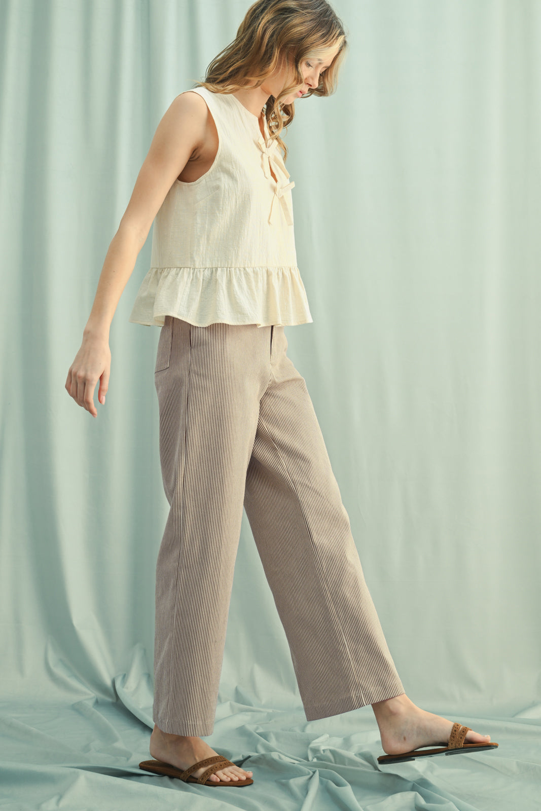 Turn heads with this sleeveless, lightweight top featuring a bold front bow detail. Its airy fabric keeps you cool while the striking bow adds a daring touch to your look, perfect for making a confident statement wherever you go.