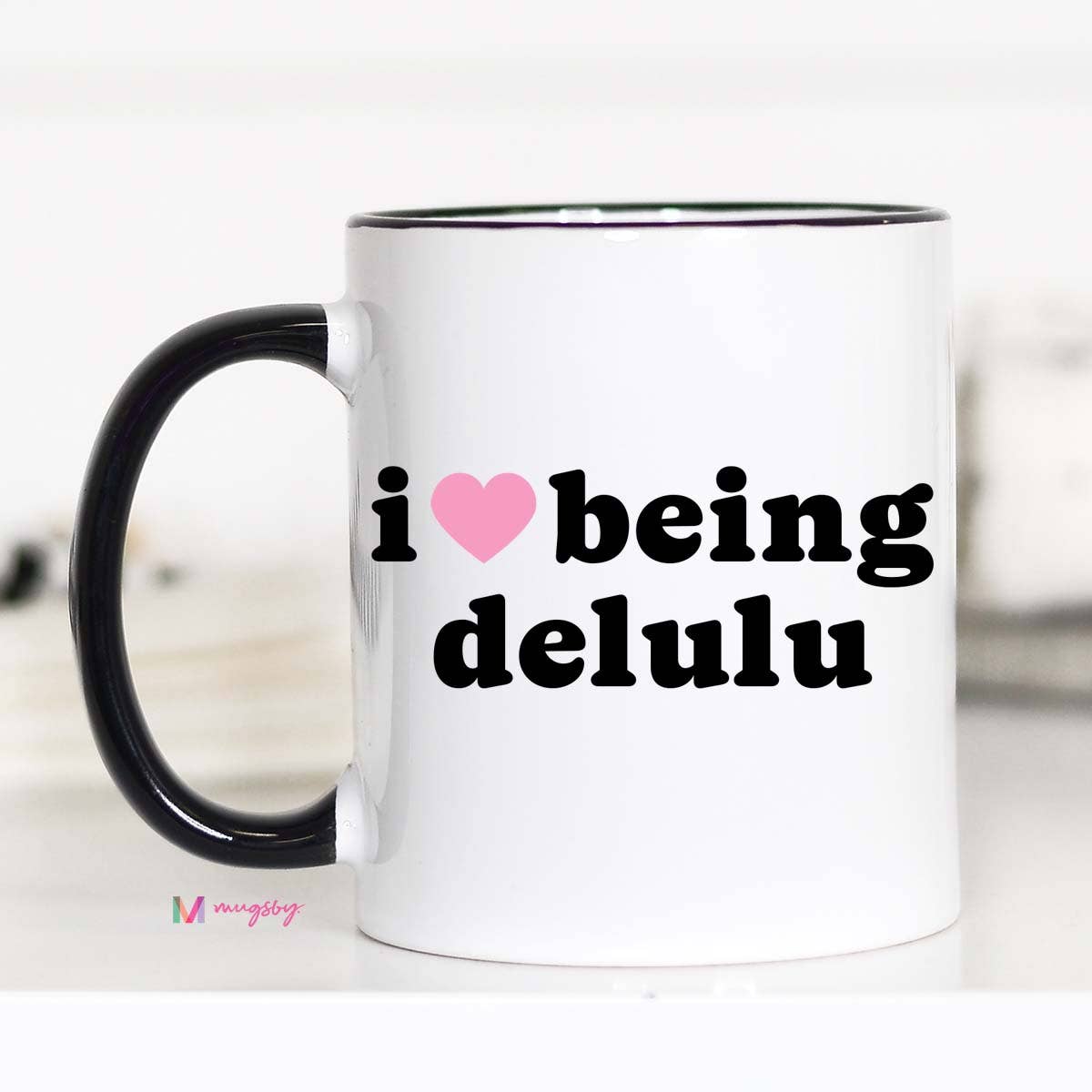 Double sided print. Top rack dishwasher safe. Microwave safe. Off white with a black rim and handle. Made of ceramic.