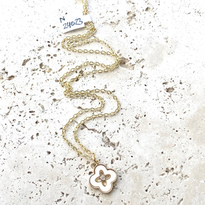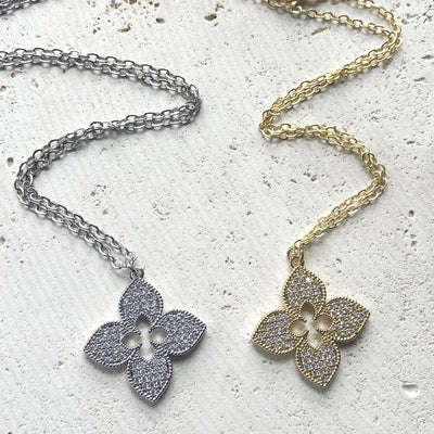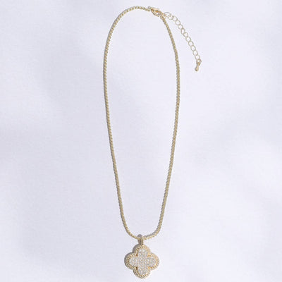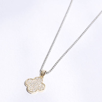 Gold Disc Clover Pave Chain Necklace
