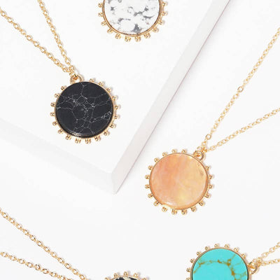 Round Pendant Necklace with Stone