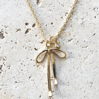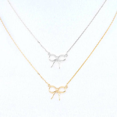 Thin Wire Tied Bow Ribbon Design Necklace