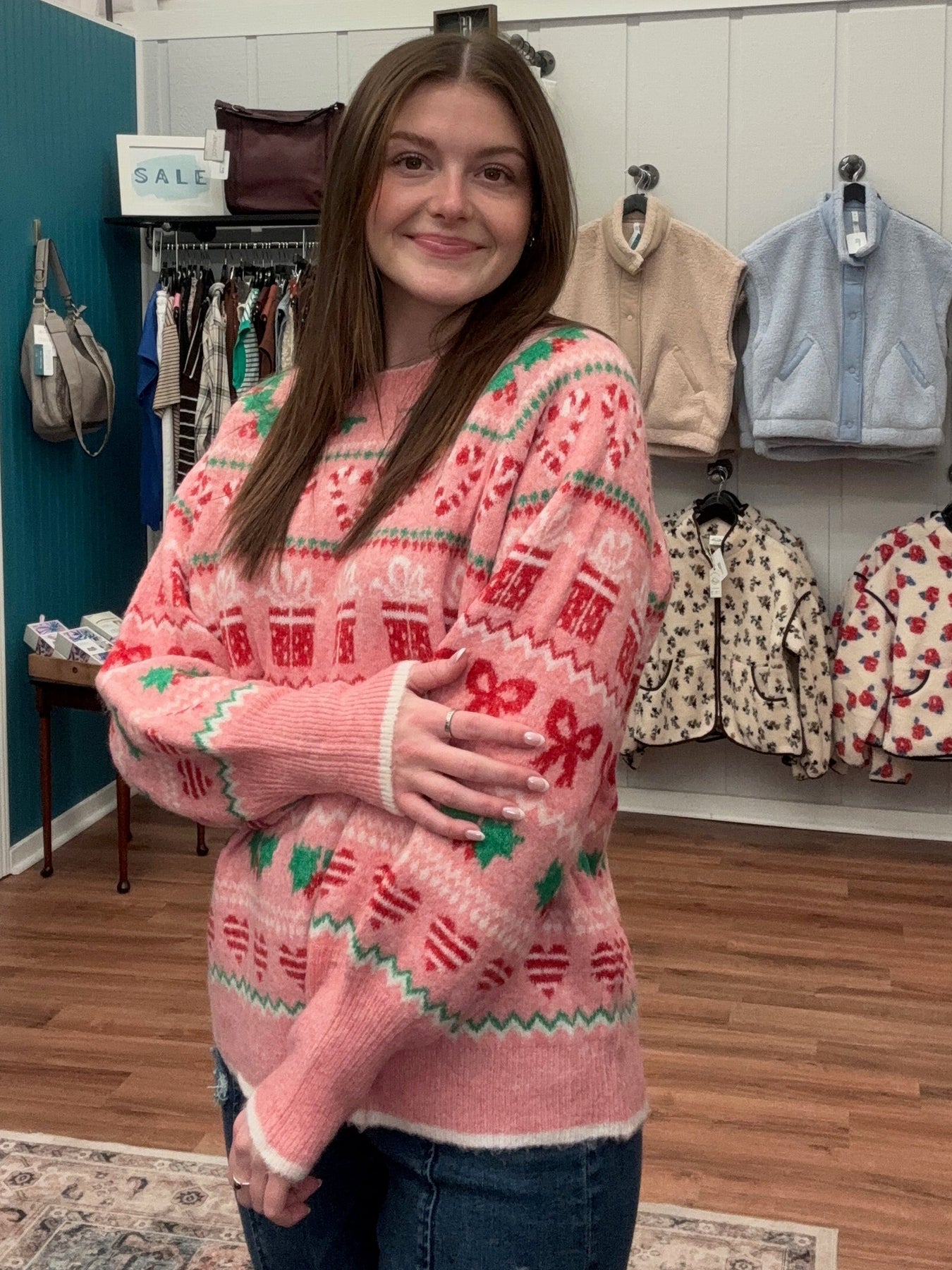 Celebrate the season in style with this festive sweater, designed to bring holiday cheer to your everyday wardrobe. Featuring a classic crew neckline and comfortable long sleeves, this piece combines timeless silhouette with contemporary flair. The cheerful Christmas-inspired pattern adds visual interest and festive spirit, making it perfect for holiday gatherings, casual outings, or cozy nights in. Crafted for both comfort and style, this sweater transitions seamlessly from Thanksgiving through New Year's celebrations. An essential addition to any seasonal wardrobe that captures the warmth and joy of the holidays.