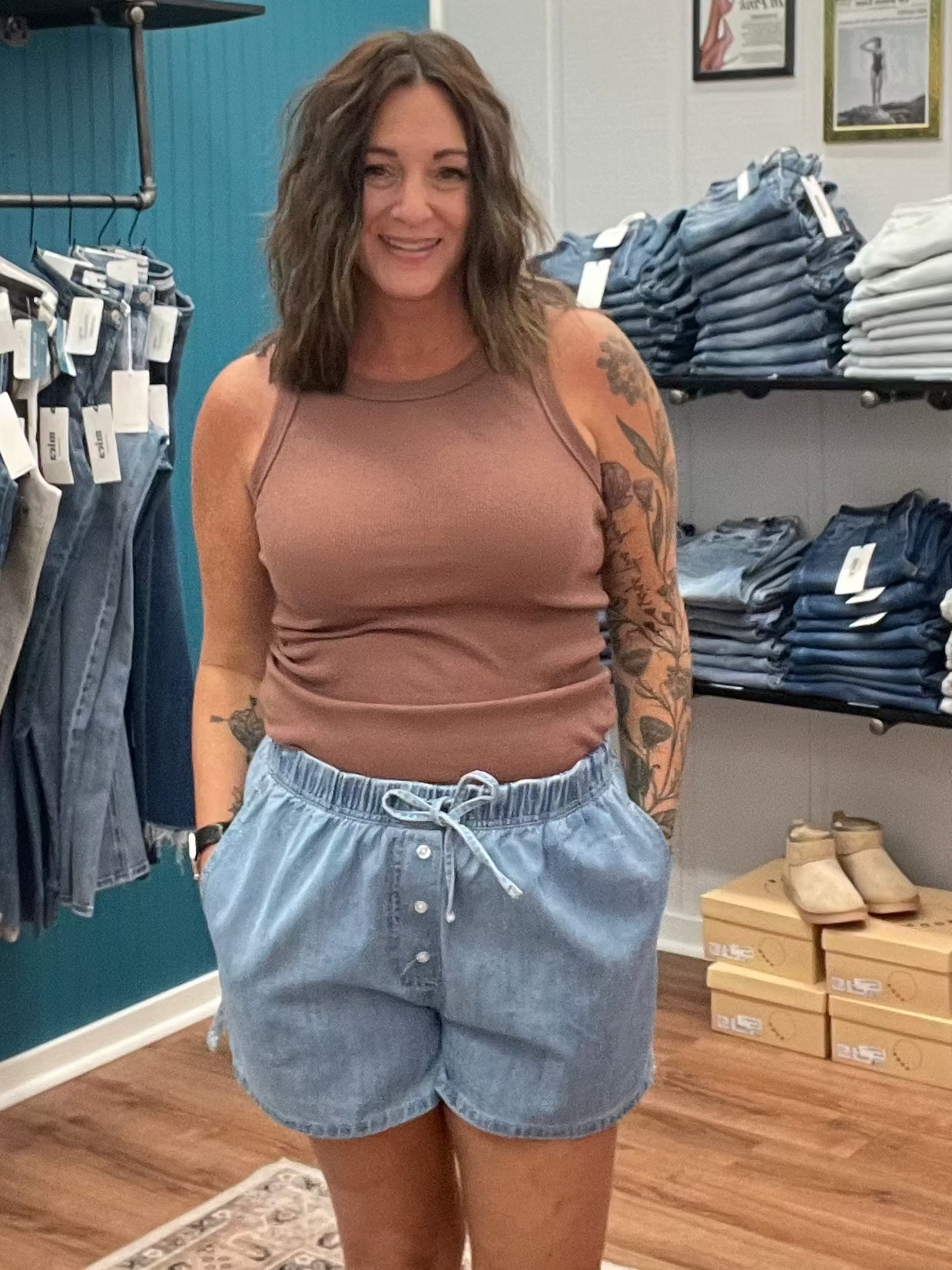 Chill out in these laid-back cotton denim shorts that keep you cool when the heat's on. Soft, breathable fabric hugs you just right, while the elastic waistband with drawstring ensures all-day comfort. Rock the classic denim look with side pockets for your essentials and decorative buttons that complete the vibe. Perfect for beach days, backyard hangs, or any sunny escape.