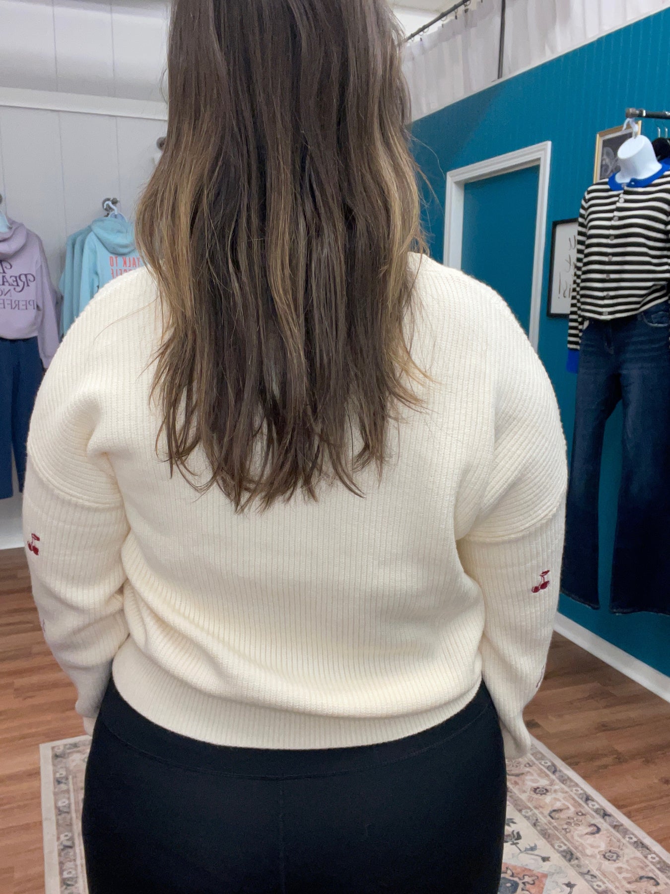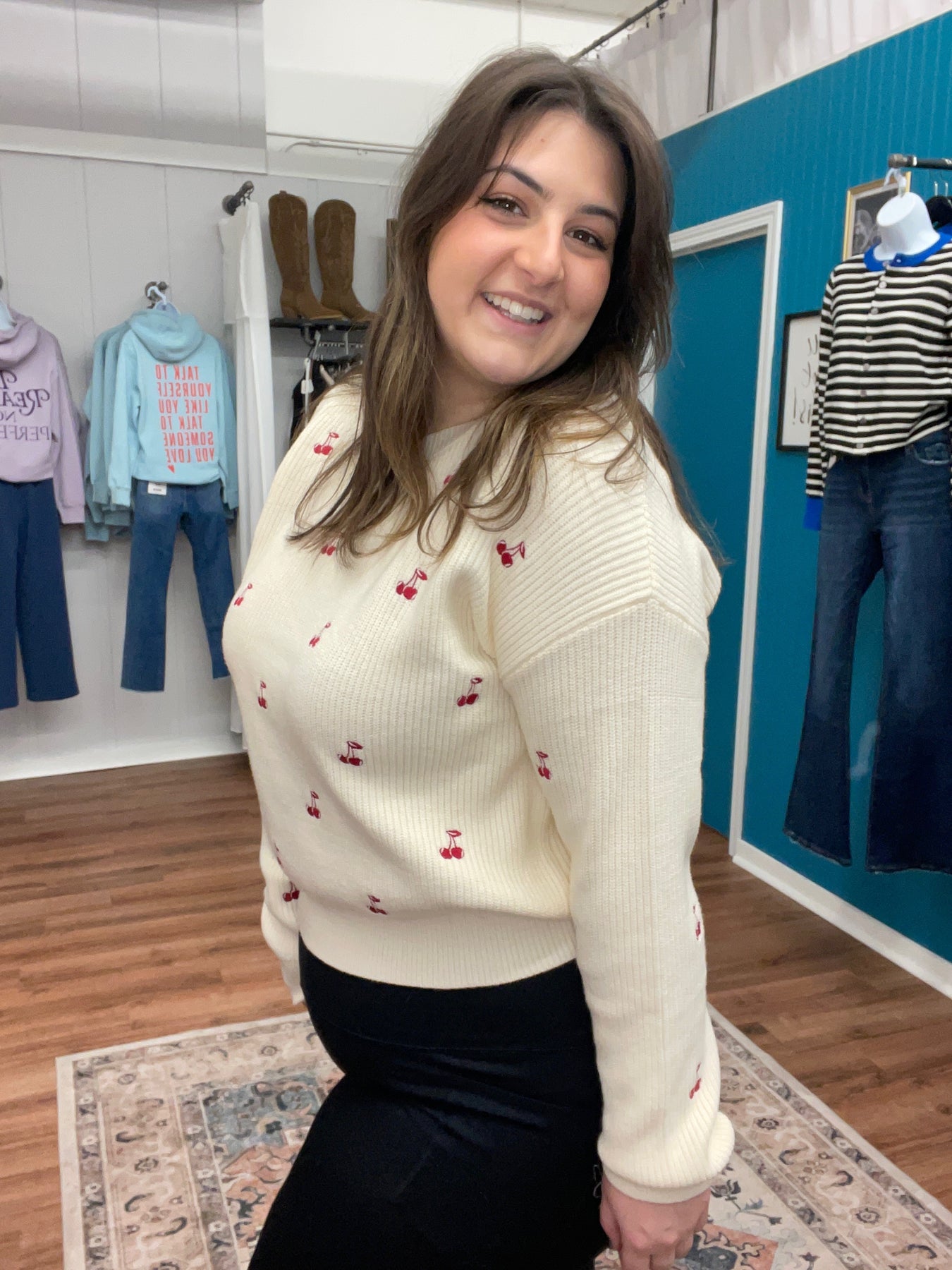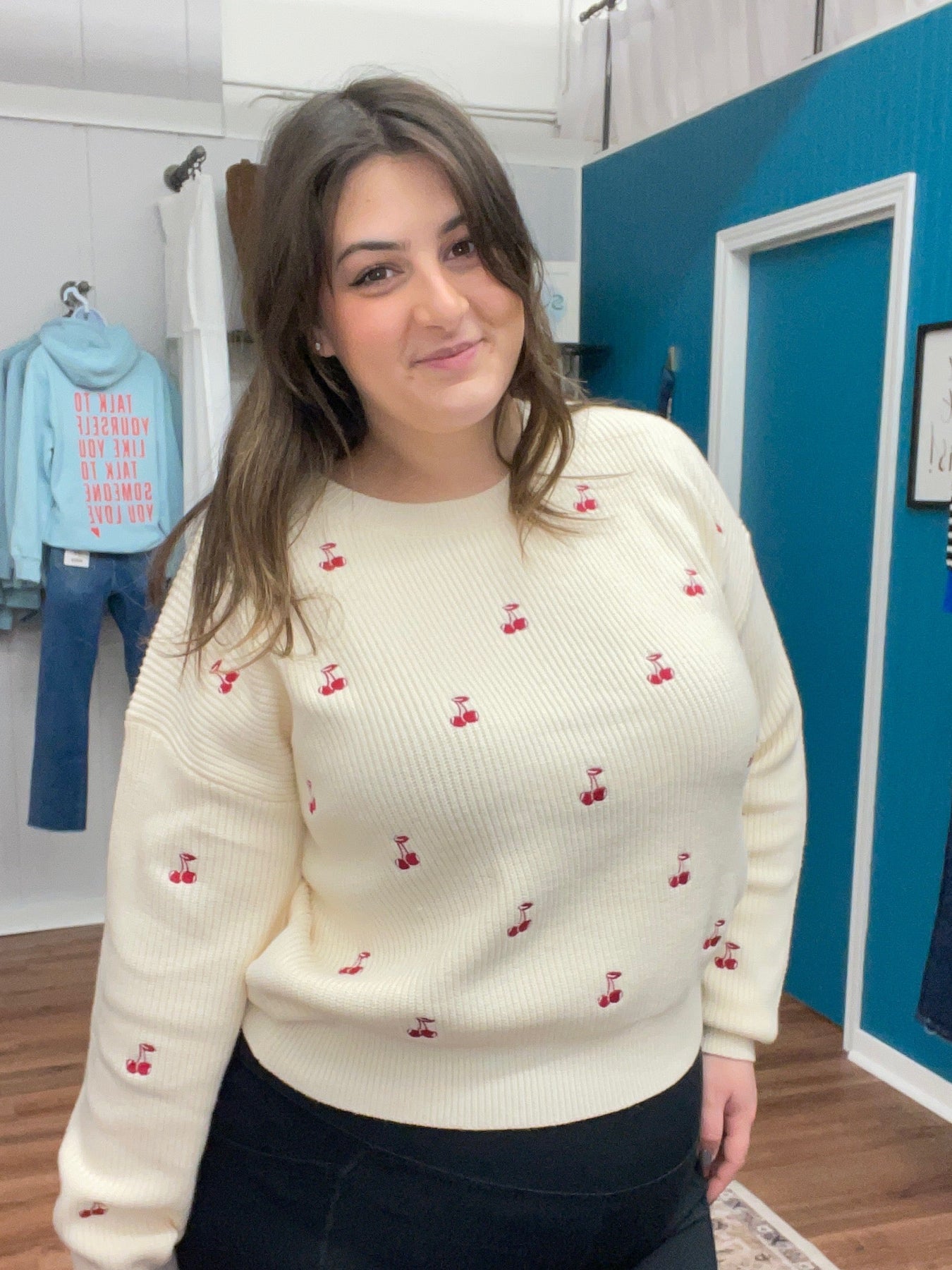 Danielle's Cherry Crewneck Sweater is the sweetest addition to your cozy collection! This charming pullover features an adorable cherry embroidered print that brings a pop of personality to everyday wear. The soft crewneck design pairs perfectly with jeans, skirts, or your favorite loungewear for effortless style. Whether you're channeling vintage vibes or just want something fun and whimsical, this sweater delivers comfort without compromising on charm. Perfect for layering through the seasons or wearing solo when the weather's just right.