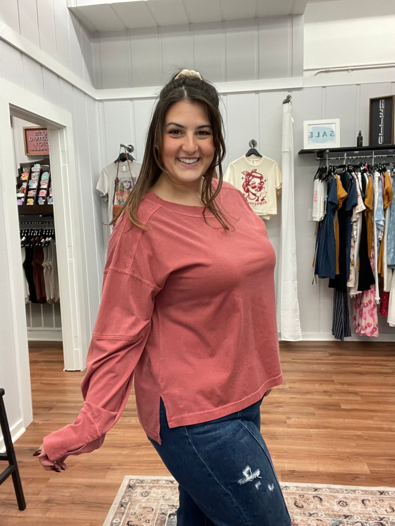 Experience the perfect blend of comfort and style with our pigment washed V-neck long sleeve top. The unique pigment wash gives each piece a soft, vintage-inspired look, while the flattering V-neck and long sleeves provide a versatile fit ideal for any occasion. Whether layered or worn alone, this top ensures a cozy, effortlessly chic look that enhances your everyday wardrobe. Make it your new favorite essential today.