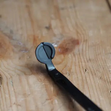 Trim your candle's wick after every burn time. Let the candle come to room temperature, then trim the wick of all the black ashy tip. To use the trimmer, place the bottom of the trimmer flush with the candle surface, rock the trimmer back so that its "elbow" rests on the surface, this keeps the trimmer at a 45-degree angle and helps ensure the cut is to the proper length.