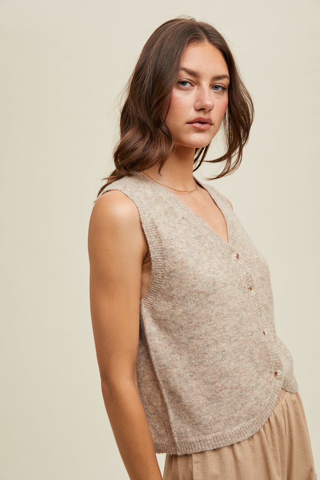 This vest is so soft, featuring brushed melange fabric! We love it with your favorite denim or skirt. Pair it alone and with long jewelry or layering under!