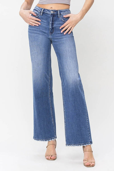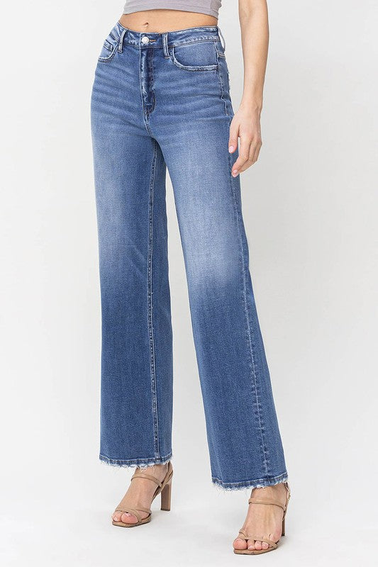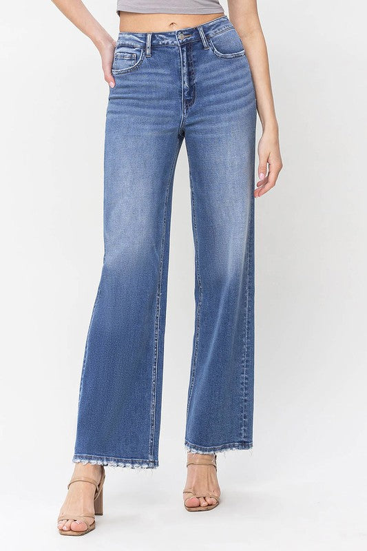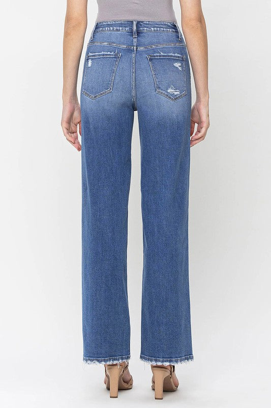 90'S Vintage super high rise loose denim. Featuring comfort stretch, super high rise waist, vintage style, and slight distressing.