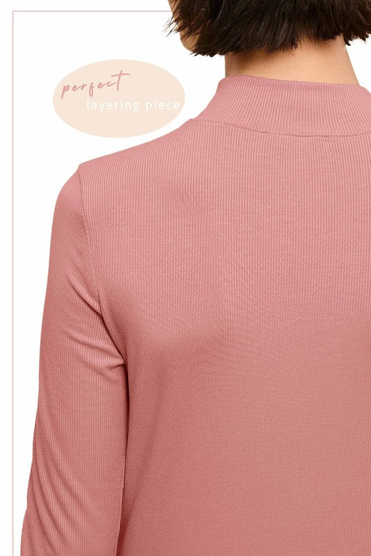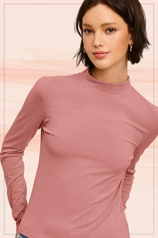 Take your basic collection to the next level with this timeless long sleeve featured in a fitted, ribbed knit fabrication with mock neckline. Lovely for layering up or simply styling solo, this so cool tee is sure to be a staple in your weekly wardrobe rotation from season to season.