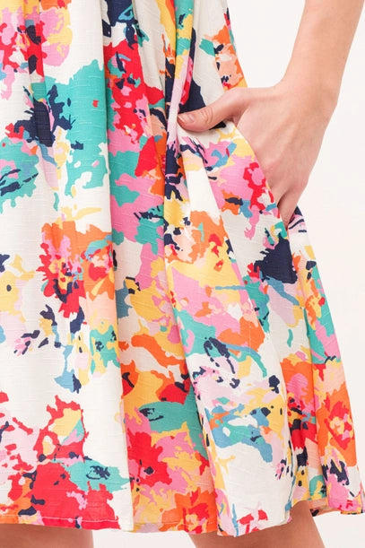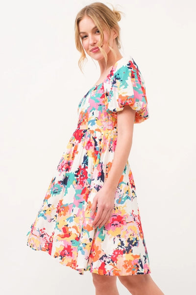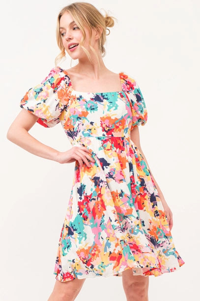 Square neck bubble sleeve floral printed dress with pockets! For work or play or weddings or date nights this mini dress is perfection!