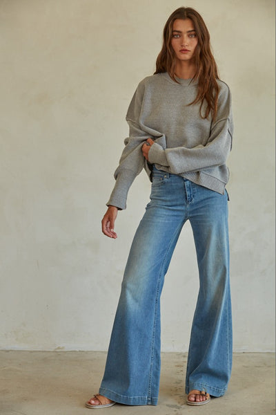 Simple yet cozy and extremely comfortable.  The Leda is a knit sweater featuring a round neck and side slits.  It is the perfect throw up to complete any look!