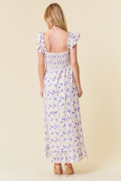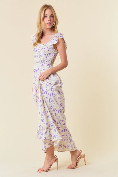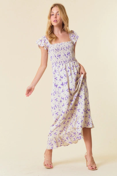 Smocked Torso floral midi dress featuring side pockets and a beautiful print. This one will make heads turn with its beauty!