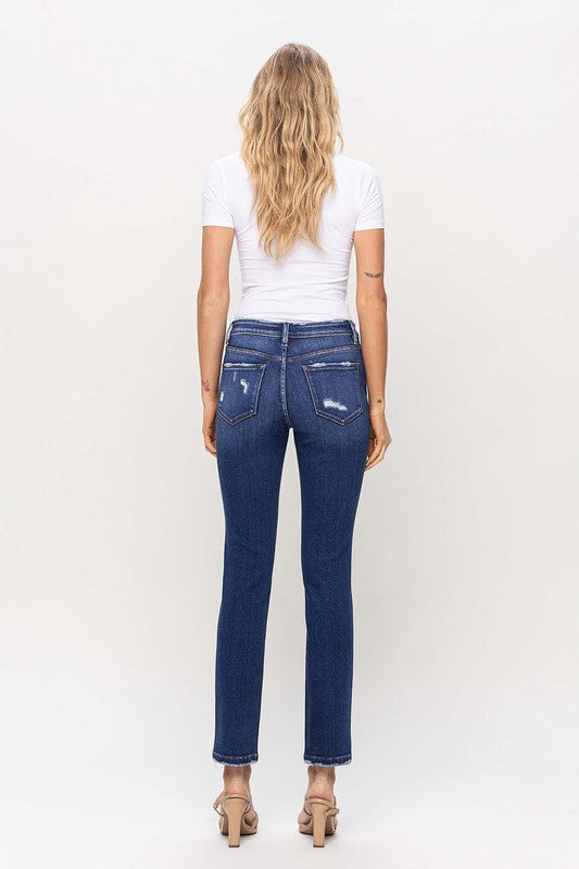London Mid Rise Ankle Slim Straight Denim
