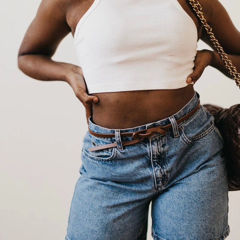 The Lydia Leather Belt is a fantastic belt that is so versatile, you can style it to fit any look. It comes in 3 different neutral colors including brown, cream, and black, and will never fail you or your style needs.