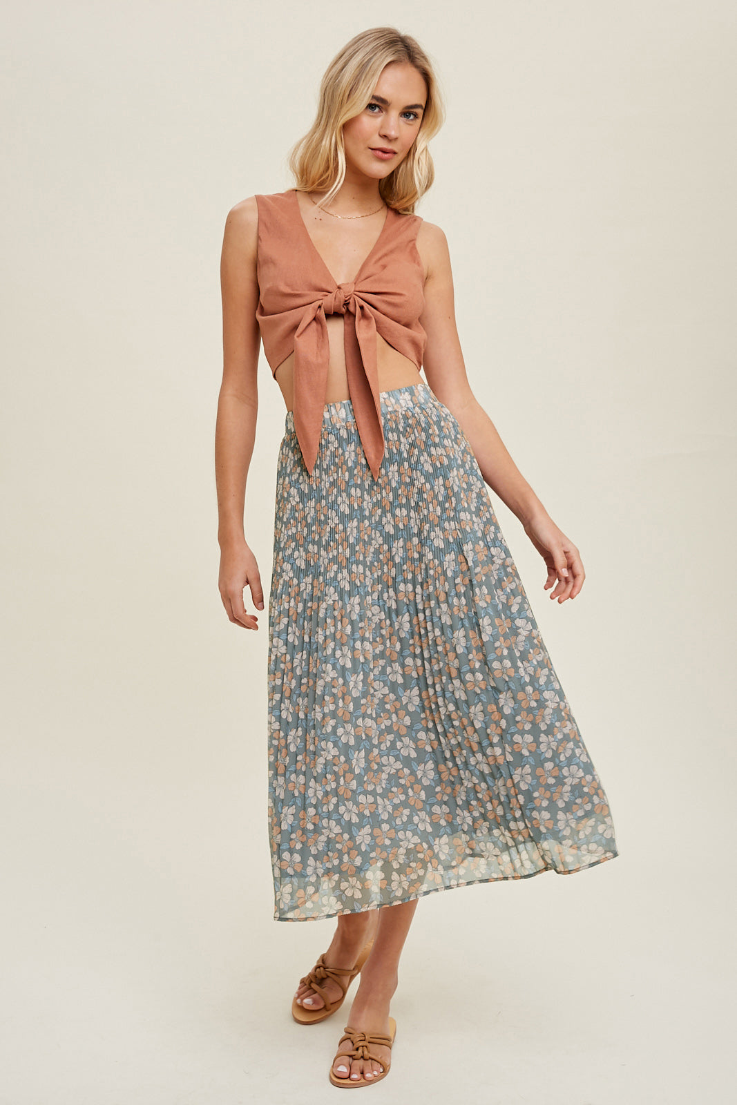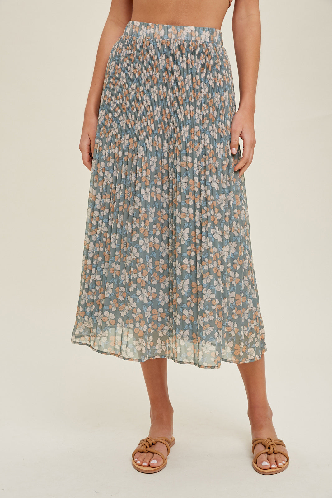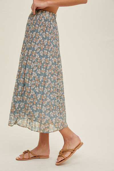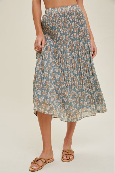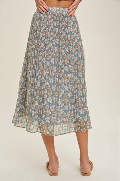 Madison Floral Pleated Midi Skirt