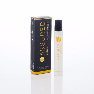 Assured - (Natural) Blend of warming amber and cashmere musk. Creamy sandalwood, patchouli, and vetiver create rich, smoky undertones. Fresh and aqueous marine notes keep things light and airy while crushed violet leaves add a feminine touch.