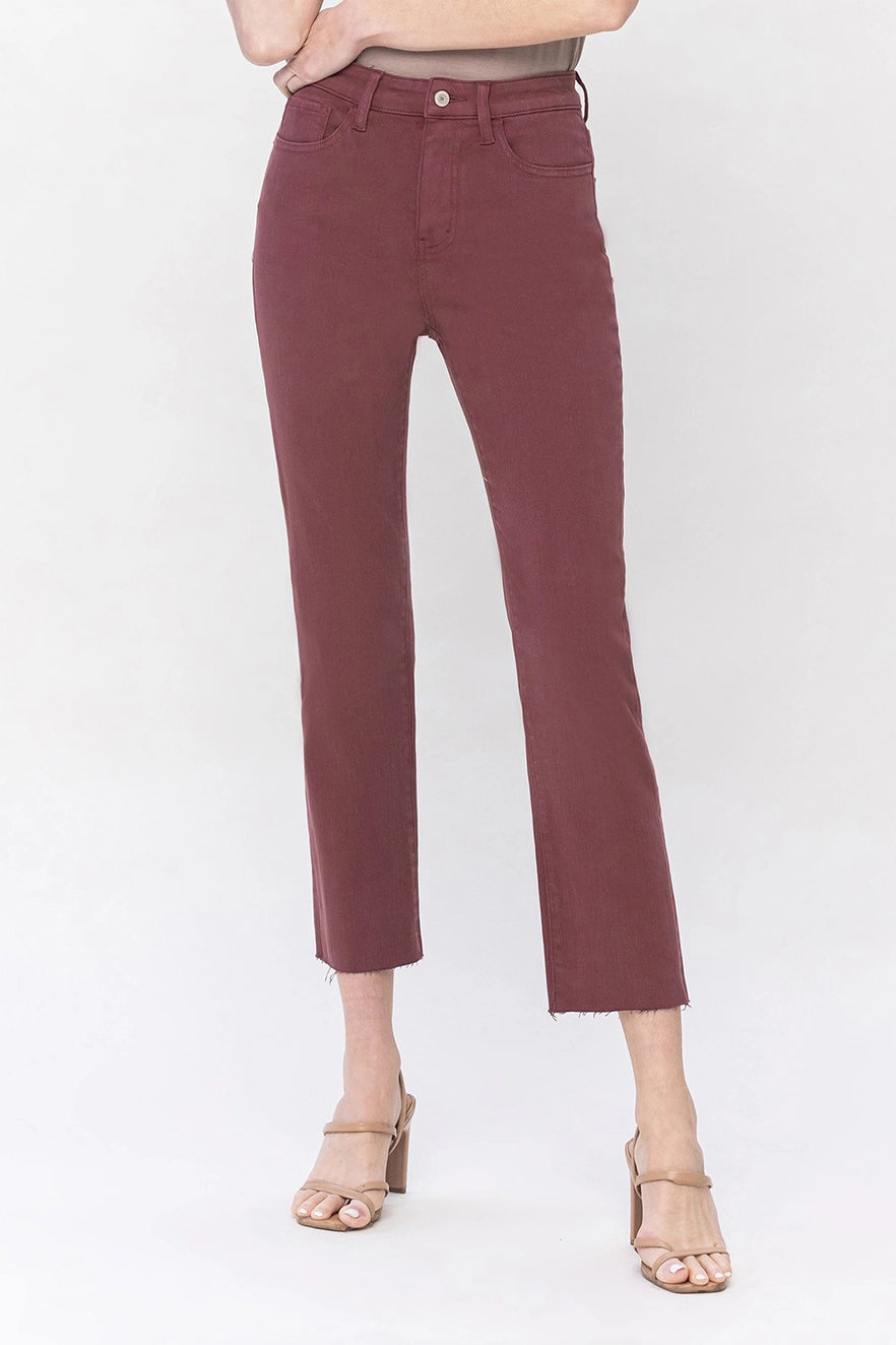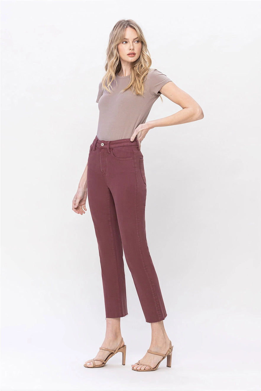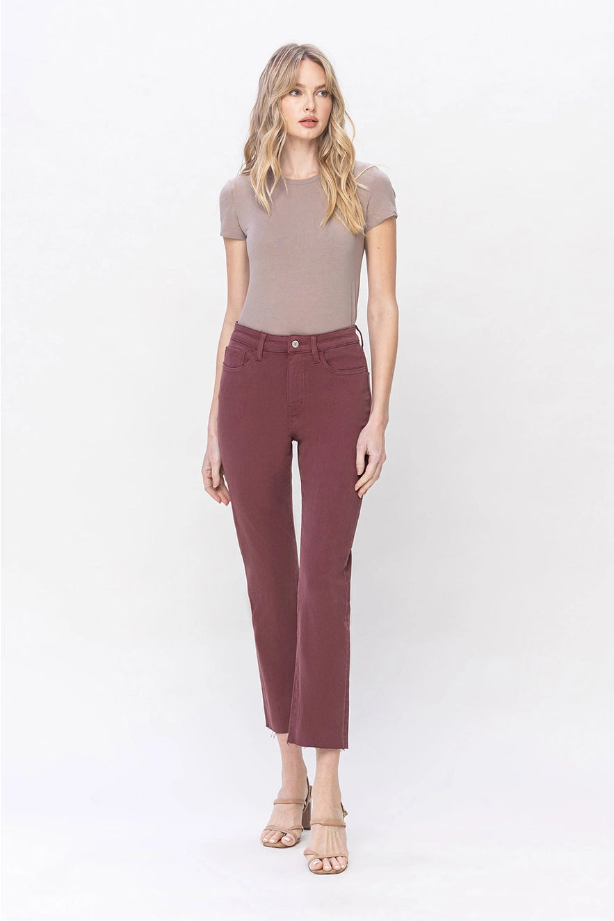 Comfort stretch denim, high rise waist, raw hem, cropped fit, slim fit AND straight leg - then add the color and you have serious perfection!