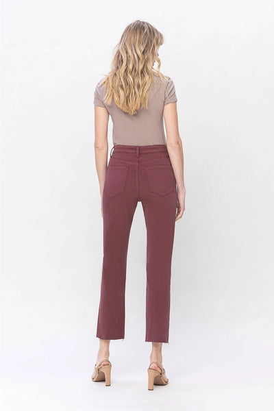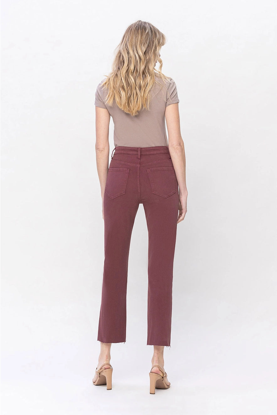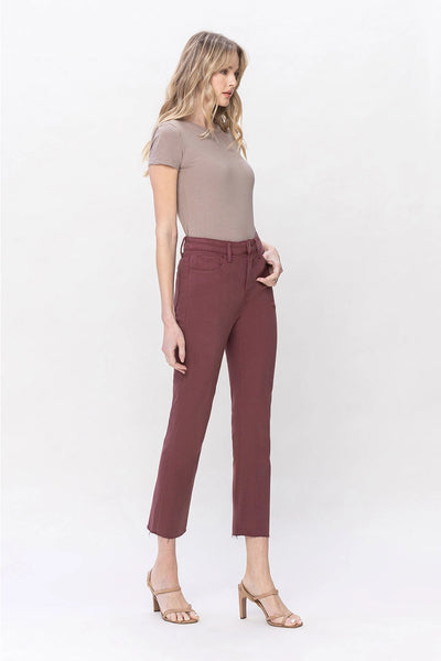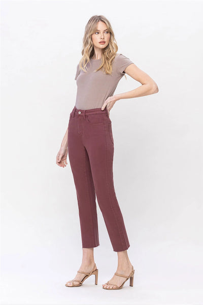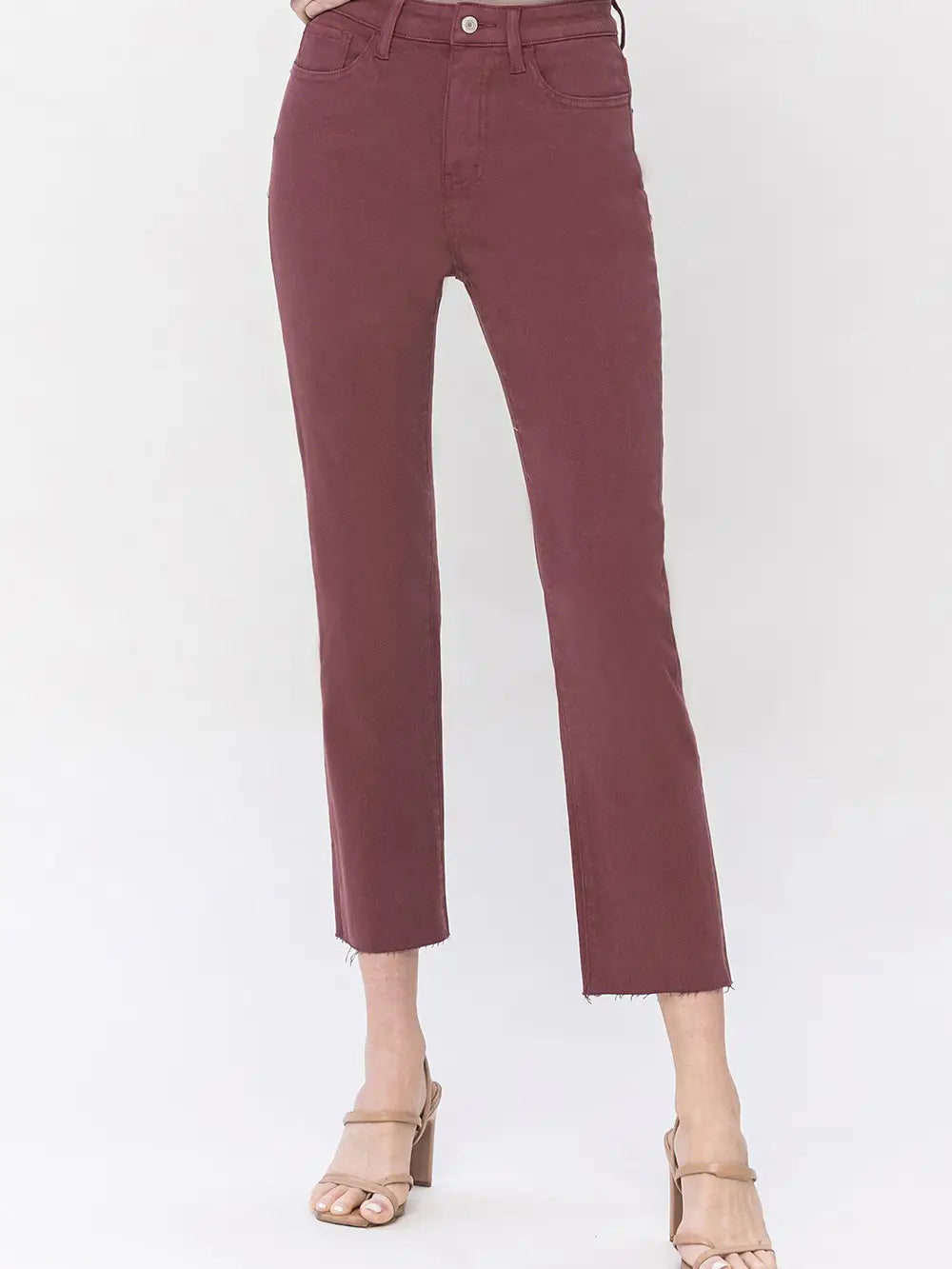 Comfort stretch denim, high rise waist, raw hem, cropped fit, slim fit AND straight leg - then add the color and you have serious perfection!
