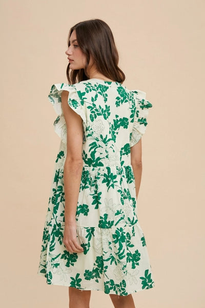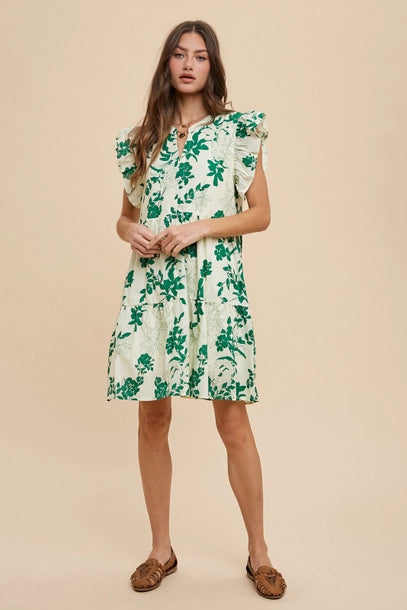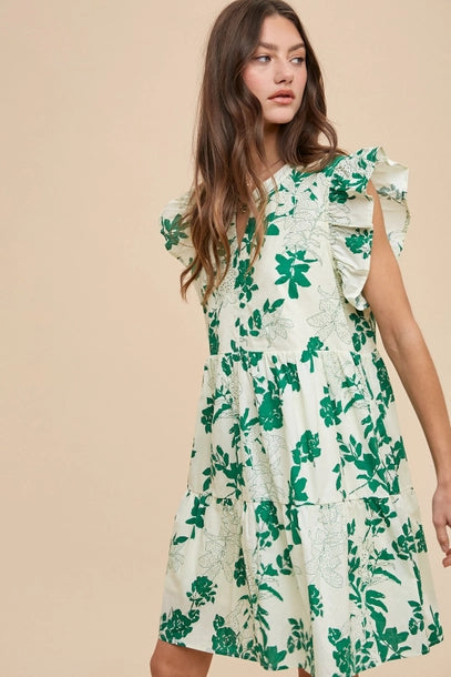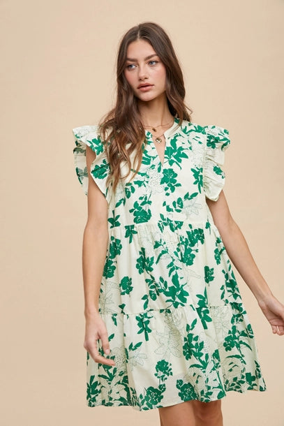 Floral printed V Neck frill tiered mini dress! The V-Neckline and ruffle sleeves are perfection, and the babydoll style and relaxed fit provide the most comfort!