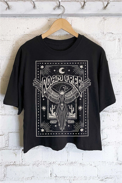 This relaxed, boxy fit tee is made with soft cotton fabric and features a classic crew neckline, unique graphic, and a slightly cropped fit.