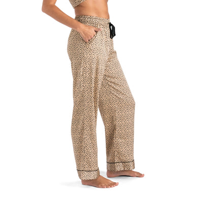Super soft, silky fabric with wide leg and side pockets. Breathable, relaxed fit and comfy elastic waistband and drawstring tie.