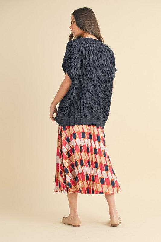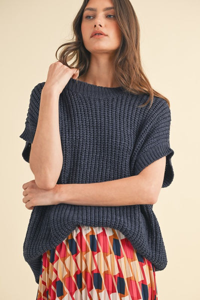 Boxy sweater vest top. This pairs so well with your favorite bottom of any type! Give it a front tuck on a skirt or simply wear out with denim, it is a win win!