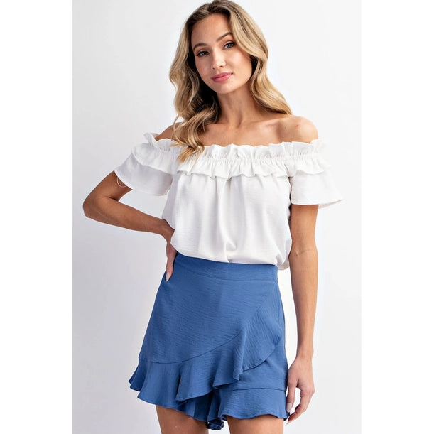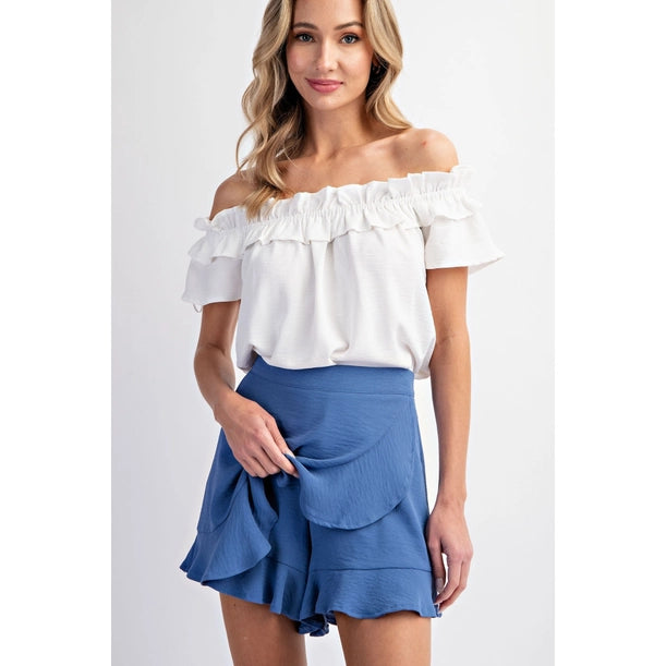 High wait ruffle wrap shorts! Yes, not a skirt - just cute enough to look like one! These are the perfect little shorts to make a look next level! Featuring a tulip ruffle hem, and flowy ruffle skort.
